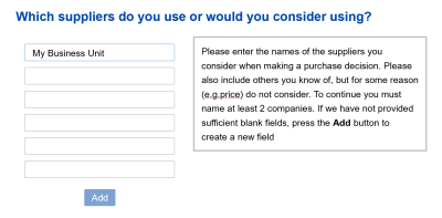 This is one area where interviewees can get worried about giving details for other suppliers, so it is useful to talk about approximations to make them feel more comfortable.