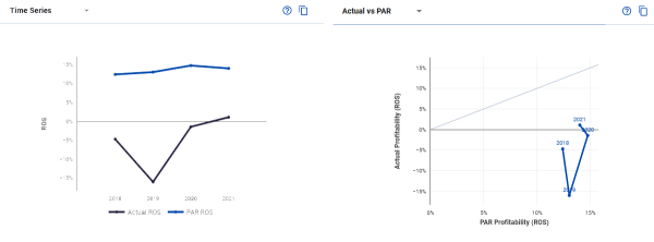 On the left is a Bar chart showing actual and PAR ROS for the latest year. If you have entered more than 1 year of data you can alos view time series data.