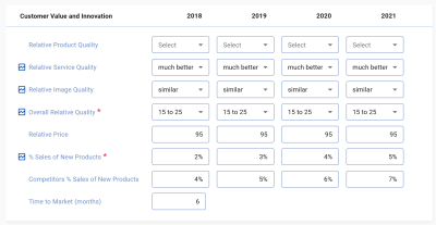 The second section looks at Customer Value and Innovation data: