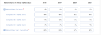 - The market share of each of the 3 largest competitors in the market in descending order of share.