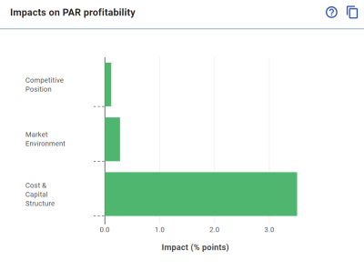 In this example there is a big positive impact from the cost and capital structure, indicating a strong financial position, a slight positive impact from the market environment factors and a vert small impact from the competitive position factors indicating that there may be a weak quality and / or relative market share.